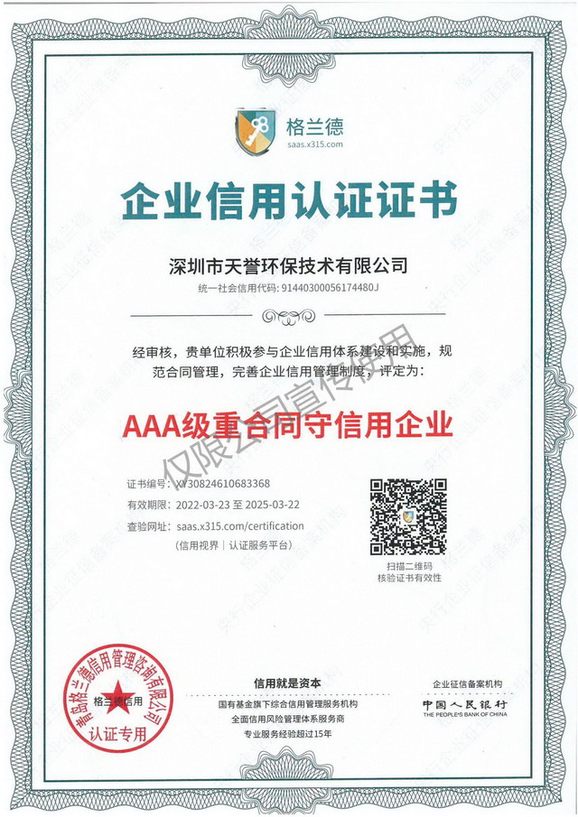 深圳天譽(yù)環(huán)保全體同仁,為能有機(jī)會(huì)向您提供優(yōu)質(zhì)、全面的服務(wù)而感到榮幸,我們將更加不懈的努力,提供更好服務(wù),回報(bào)廣大客戶(hù)。