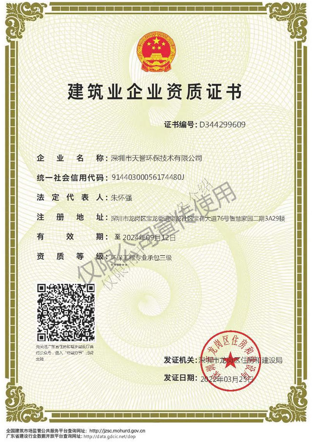 擁有廢水、廢氣治理核心技術(shù)發(fā)明專(zhuān)利多項(xiàng),實(shí)用新型、外觀(guān)設(shè)計(jì)、軟件著作等專(zhuān)利技術(shù)若干;具備環(huán)境工程專(zhuān)包資質(zhì)、國(guó)家高新技術(shù)企業(yè)、專(zhuān)精特新、創(chuàng)新型企業(yè)資質(zhì)、安全生產(chǎn)許可證、環(huán)保管家先行示范單位甲級(jí)資質(zhì)、廣東省環(huán)境污染廢水廢氣治理能力評(píng)價(jià)證書(shū)等資質(zhì),同時(shí)是廣東省環(huán)保協(xié)會(huì)會(huì)員,深圳市龍崗區(qū)生態(tài)環(huán)境產(chǎn)業(yè)協(xié)會(huì)理事單位。