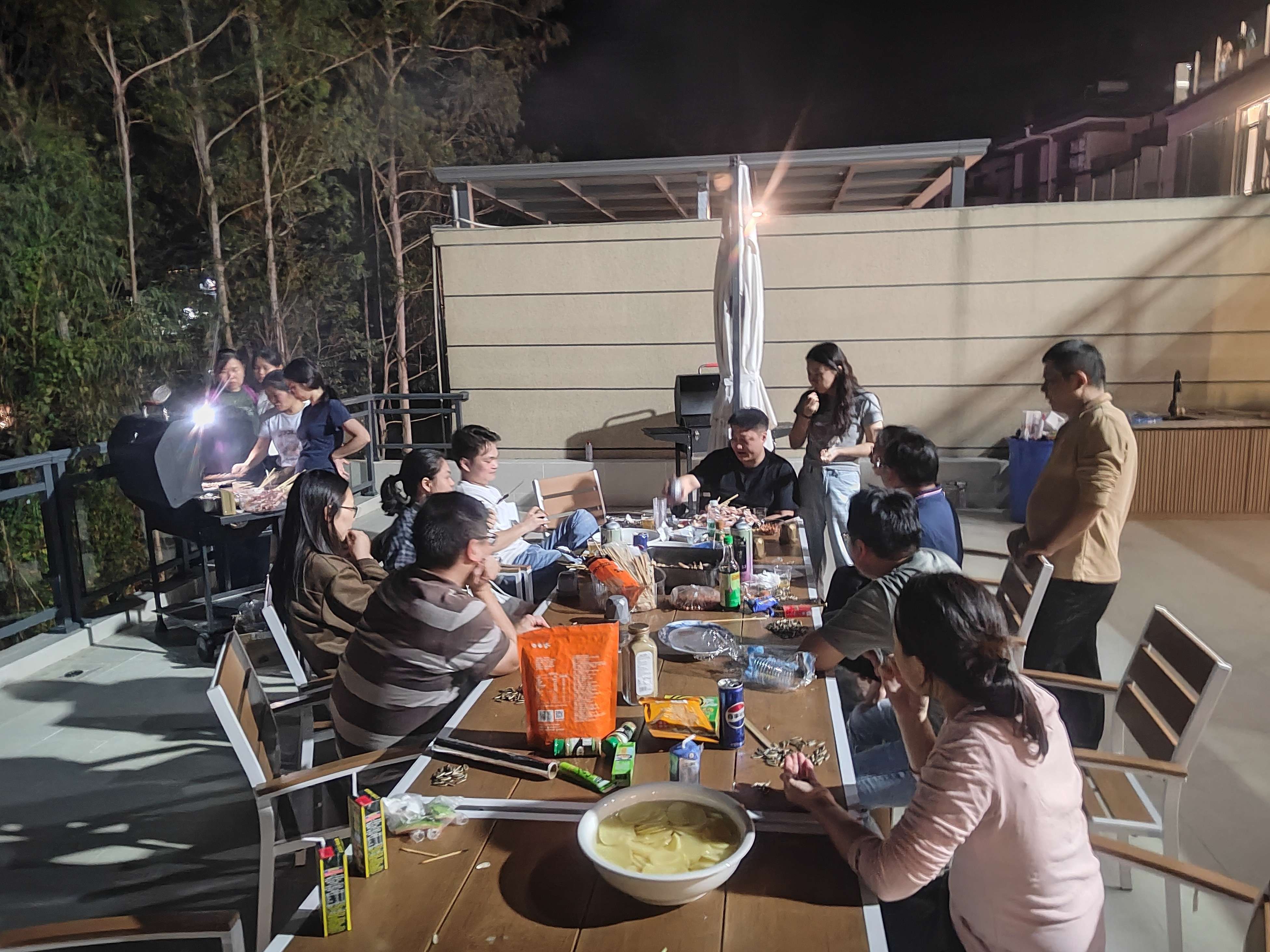 隨著夜幕降臨,本次團建的重頭戲——燒烤與火鍋晚宴正式拉開序幕。后勤的同事早已備好琳瑯滿目的食材,大家自發(fā)分工,有的化身“燒烤大師”精心烹飪,有的負責準備火鍋配料,默契配合,其樂融融。炊煙裊裊,香氣四溢,在舉杯交錯和談笑風生中,平日工作中的伙伴成了親密無間的家人,彼此的情誼在美食與歡笑的催化下迅速升溫。